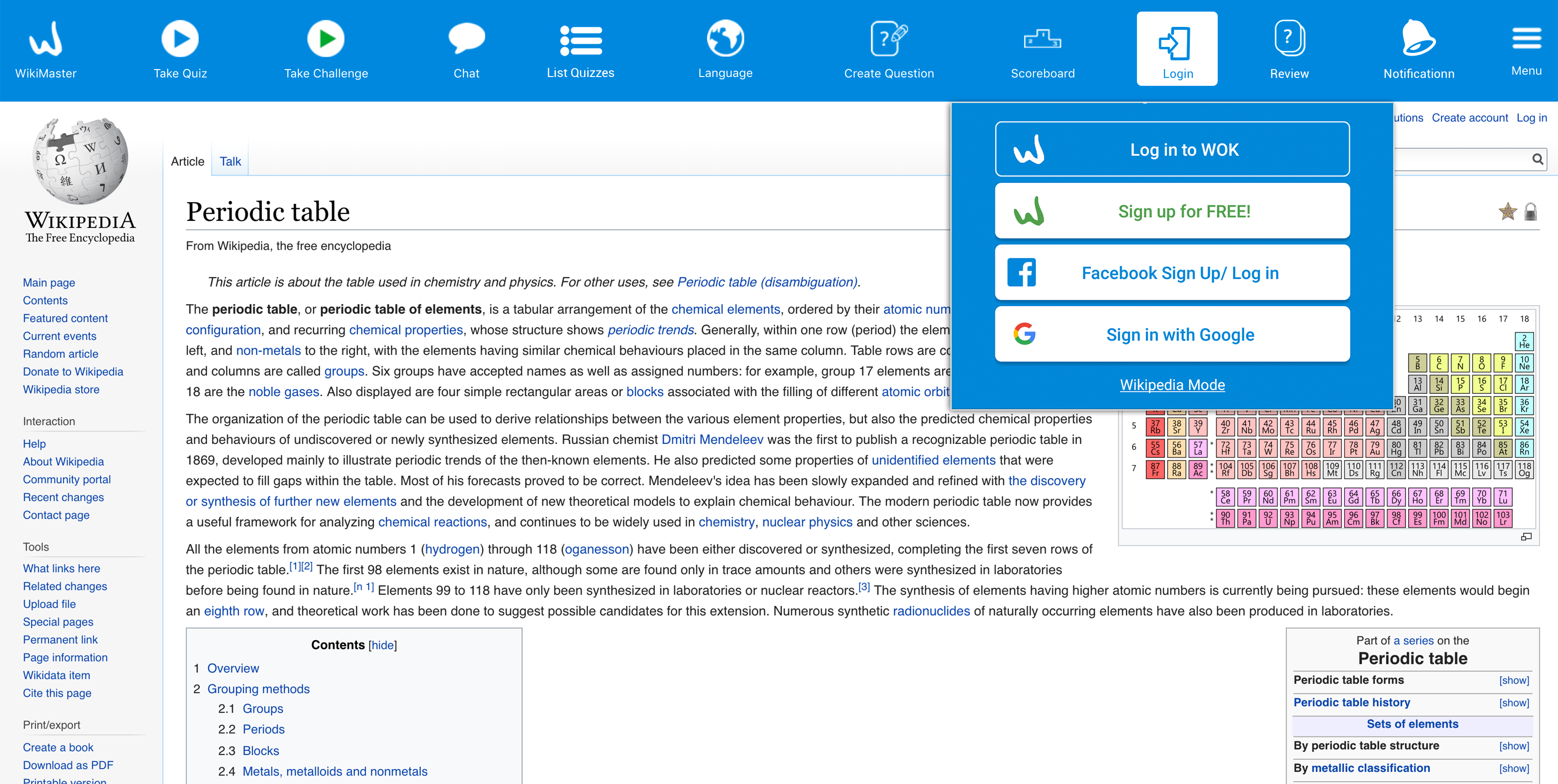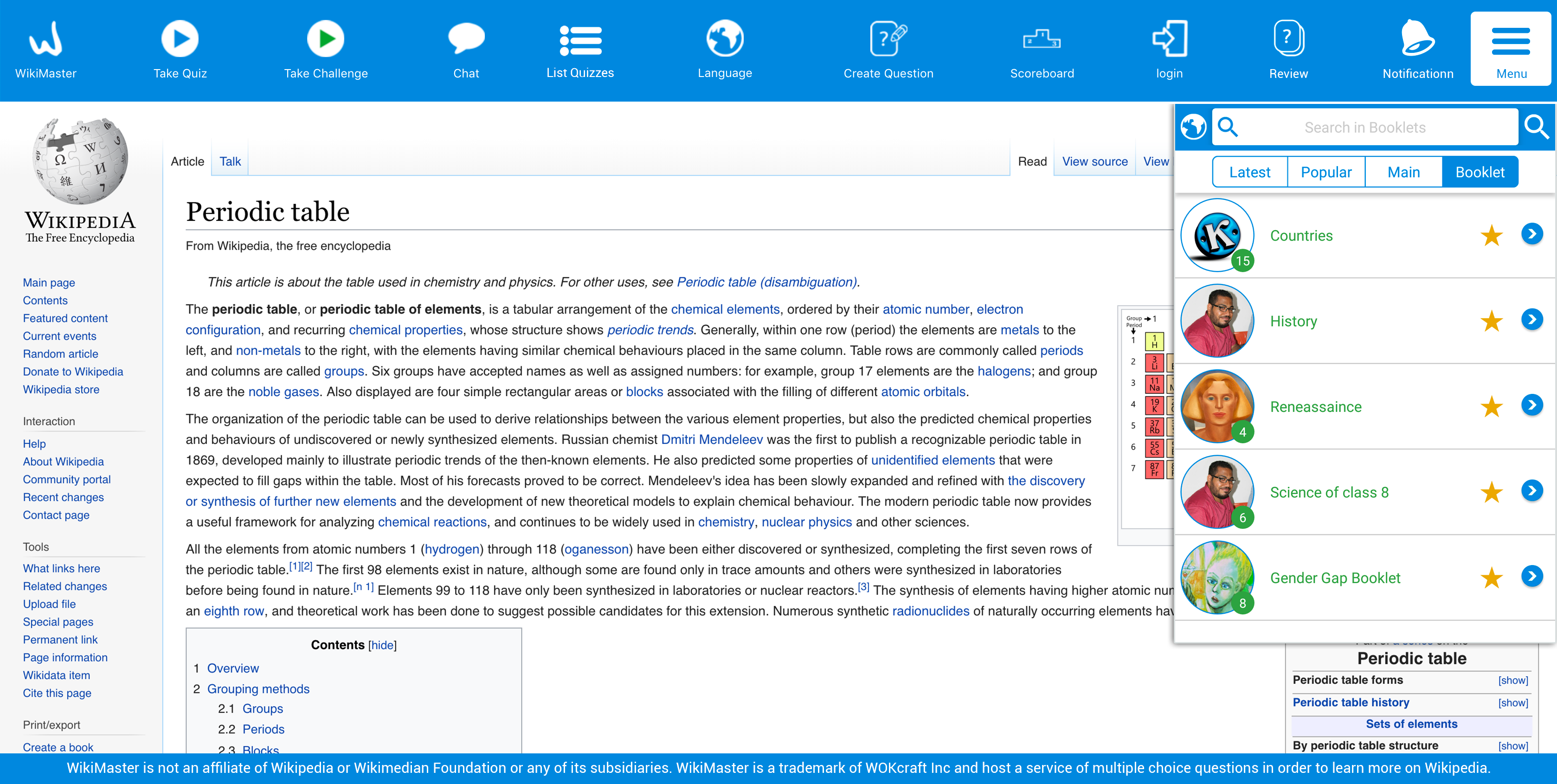 We at WOK consider WikiMaster as being an even improved version of Wikipedia. Call it an upgrade to 2.0 if you like. In the WikiMaster app, we have added layers of academic useful functionality for students to get more power of the vast information on Wikipedia in order to quickly and more easily learn facts. As we added a new layer of fun to it. Now: Time has come for the WOK project to turn its focus to the Desktop version. Bringing Wikipedia on the web to the next level. Getting from being the Nr 1 Library of Information to the University. Here is a sneak preview.
